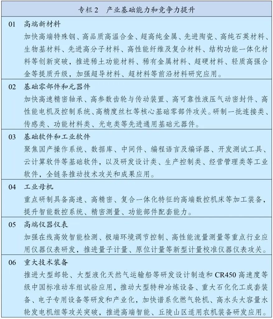規(guī)劃綱要首次在"產(chǎn)業(yè)基礎(chǔ)能力和競(jìng)爭(zhēng)力提升"專(zhuān)欄中,將"基礎(chǔ)軟件和工業(yè)軟件"與高端新材料、基礎(chǔ)零部件并列為基礎(chǔ)再造工程的核心方向。文件明確聚焦國(guó)產(chǎn)操作系統(tǒng)、數(shù)據(jù)庫(kù)、中間件、編程語(yǔ)言及編譯器等基礎(chǔ)軟件全鏈條技術(shù)攻關(guān),這相當(dāng)于為信創(chuàng)產(chǎn)業(yè)劃定了清晰的作戰(zhàn)地圖。